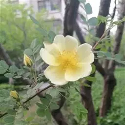 黄刺玫是蔷薇科蔷薇属的直立灌木。高2-3米;枝粗壮,密集;小叶片呈宽卵形或近圆形,边缘有圆钝锯齿,…