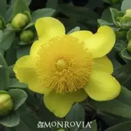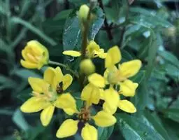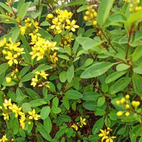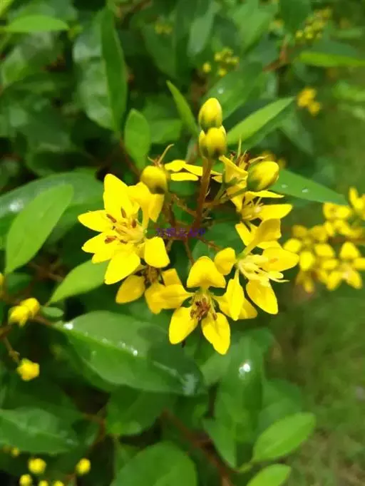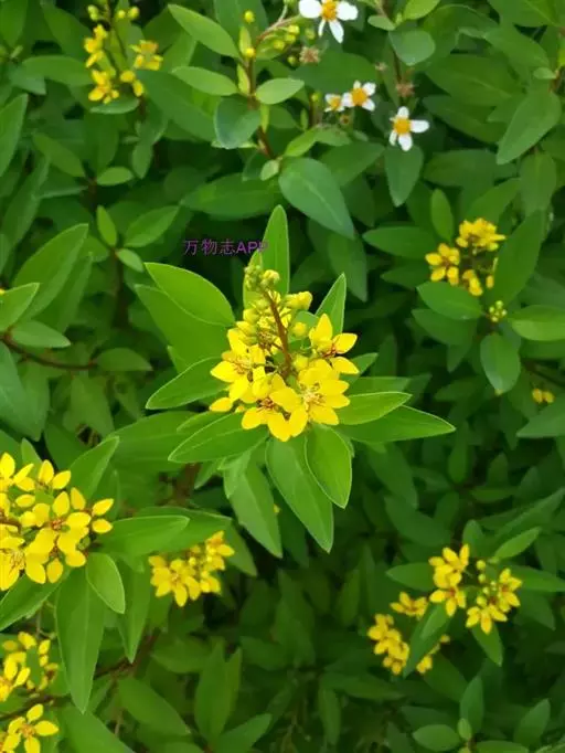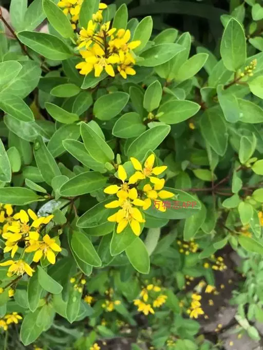 金英常绿灌木,株高约50-160厘米,嫩茎红色。叶片绿色,对生,椭圆形,先端尖,基部楔形,全缘。…