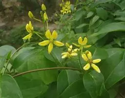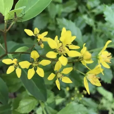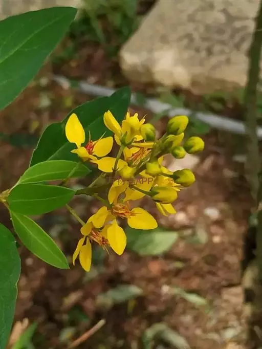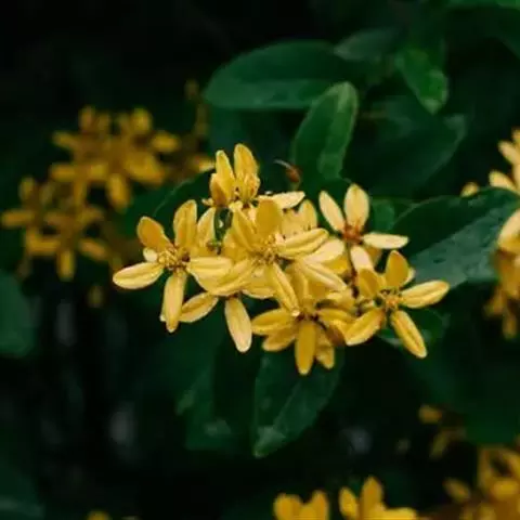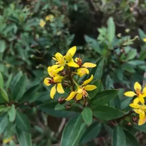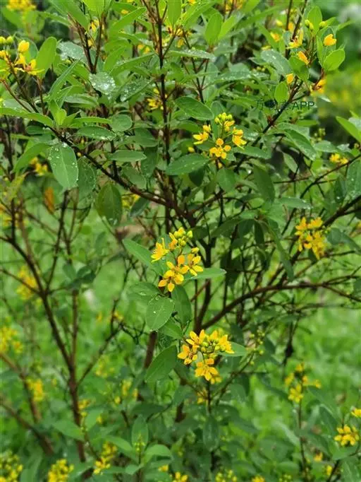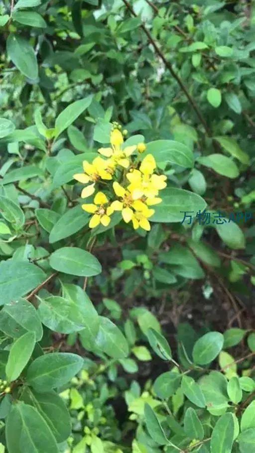 常绿灌木,株高约50-160厘米,嫩茎红色。叶片绿色,对生,椭圆形,先端尖,基部楔形,全缘。花顶生,总状花序,花冠黄色。