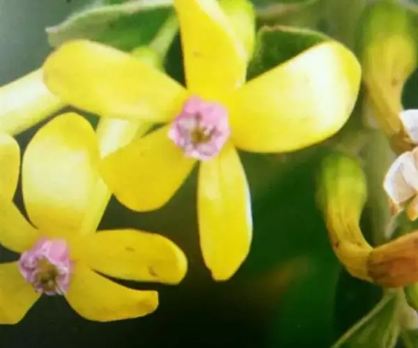 花两性,芳香;总状花序长2-5cm,常下垂,具花5-10朵;花序轴和花梗具短柔毛;花梗长2-5mm;苞片卵状披针形或椭圆状披针形,长5-7mm,宽1.5-2.5mm,先端急尖,两面均有短柔毛;花萼黄色,或仅萼筒黄色而微带浅绿色晕,外面无毛;萼筒管形,长12-15mm,宽1.5-2.5mm;萼片长圆形或匙形,长5-7mm,宽2.5-4mm,先端圆钝,开展或反折;花瓣近匙形或近宽倒卵形,长2.5-3.5mm,宽2-3mm,先端圆钝而浅缺刻状,浅红色,无毛;雄蕊短于或与花瓣近等长,花丝长约1.5mm,花药长圆形,比花丝稍短;子房无毛;花柱不分裂或仅柱头2裂,长11-14mm,几与雄蕊等长或稍长,柱头绿色。