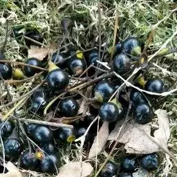 果实球形或宽椭圆形,长8-10mm,宽几与长相似,熟时黑色,无毛。花期5月,果期7-8月。