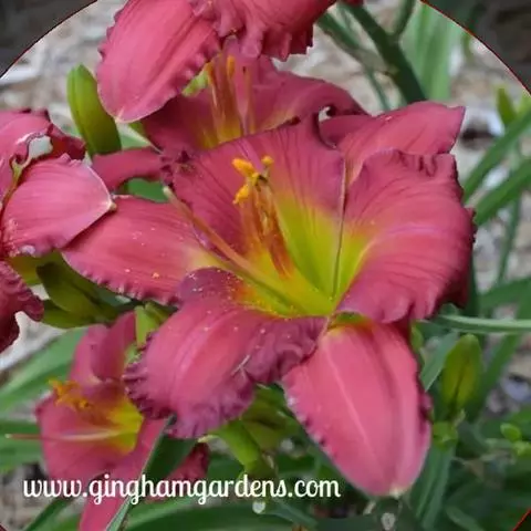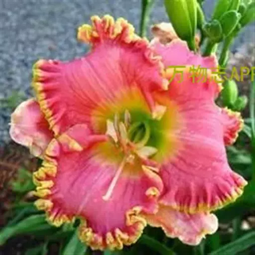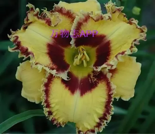 大花萱草(学名:Hemerocallis hybrida Bergmans)是百合科,萱草属多年生宿根草本植物,根状茎粗壮,肉质根。叶基生、宽线形、对排成列,背面有龙骨突起,嫩绿色。花薹由叶丛中抽出,聚伞花序或圆锥花序,有花枝,花色模式有单色、复色和混合色。花大,漏斗形、钟形、星形等,外花被裂片倒披针形或长圆形,内花被裂片倒披针形或卵形,花药黄色、红色、橙色或紫色等多种颜色。子房上位,纺锤形,果实呈嫩绿色,蒴果,背裂,5-10月开花,