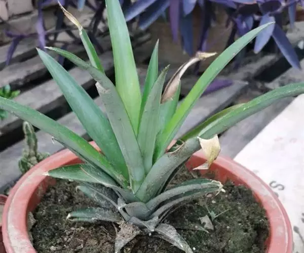 绝大多数观赏菠萝另一种特殊习性是一生中只开一次花,开花之后母株再活一段时间即死亡,这时在母株的茎基部或根部萌生一至数个蘖(niè)芽,这些蘖芽是繁殖新植株的好材料。