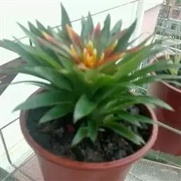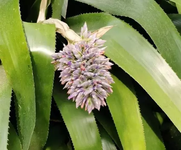 菠萝花从发芽,到成长,再到灿烂的盛开。心无旁骛,行者无疆,即使方寸之土,也要深入精髓。这种追求完美的信念一直伴随着菠萝花。众多的小花密聚在花茎上,形成粗粗的花穗,花穗先端的苞片成放射状伸展。每一朵小花都呈星形。花有黄色的、淡绿色的、粉色的和白色的等。菠萝是一种十分美丽既可观花又能赏叶的室内盆栽花卉。它以基特有的莲座状株型,鲜艳的穗状花序,较长的花期逐渐成为年宵花市场上的“宠儿”。