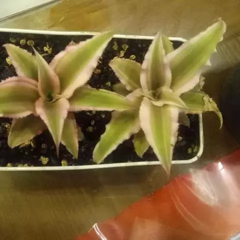 彩叶凤梨 L.B.Sm.) 凤梨科多年生常绿草本。株高25-30厘米,茎短。叶革质,带状,常基生,…