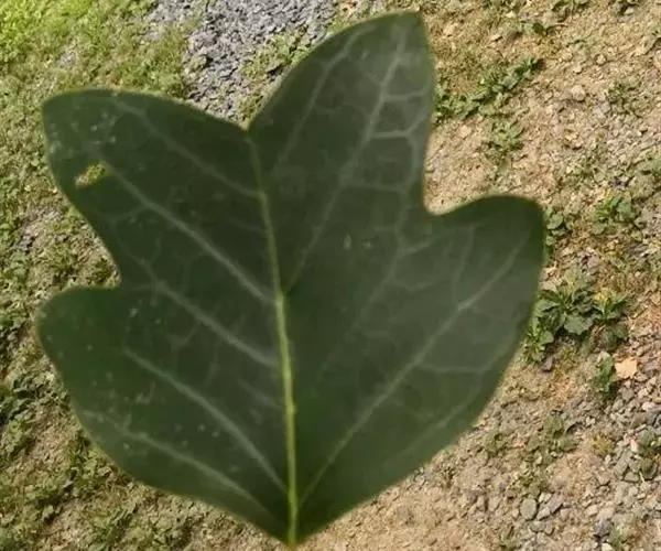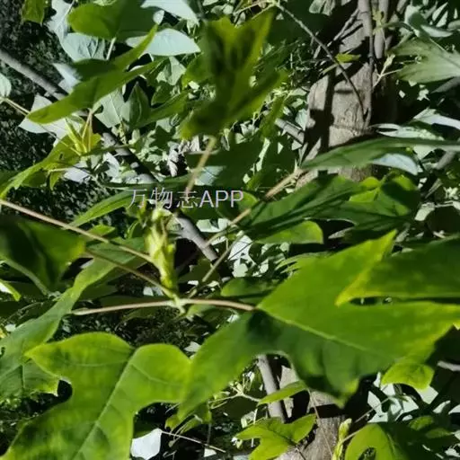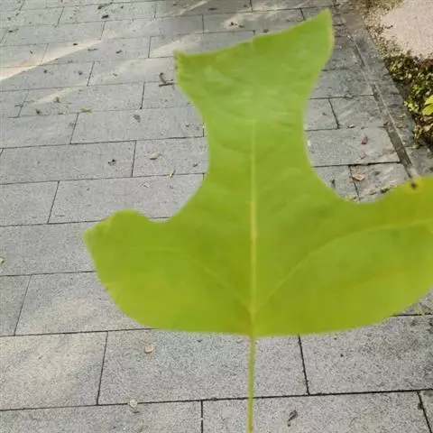 鹅掌楸 乔木,高达40米,胸径1米以上,小枝灰色或灰褐色。叶马褂状,长4-12(18)厘米,近基部每边具1侧裂片,先端具2浅裂,下面苍白色,叶柄长4-8(-16)厘米。