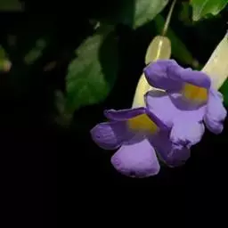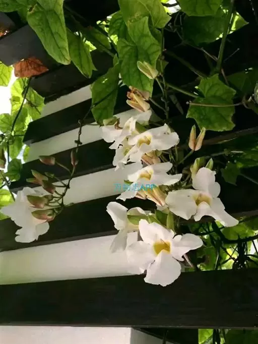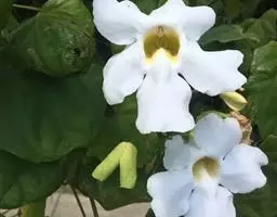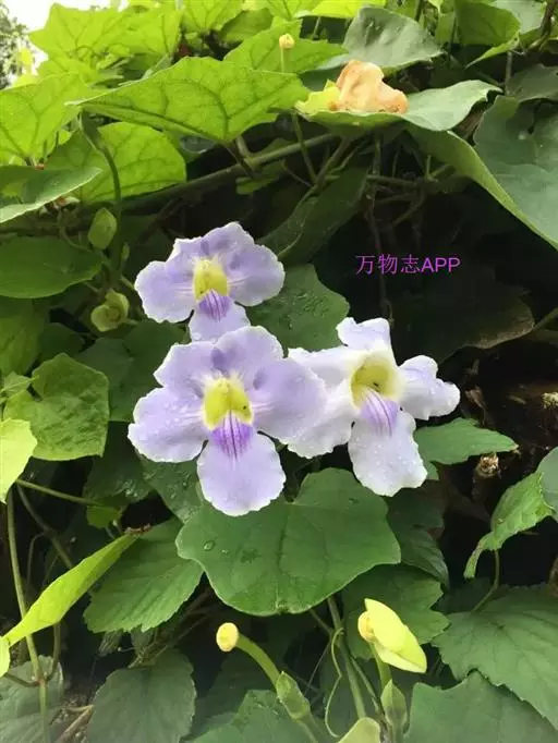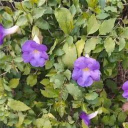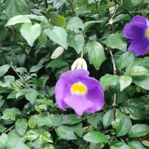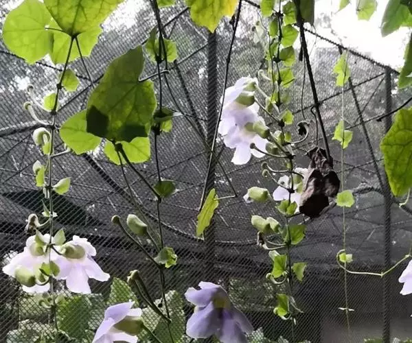 管理:山牵牛喜湿润的土壤环境,忌渍水,生长旺盛阶段应保证水分的供应。其对肥料的需求量较多,除在定植时施用基肥外,生长旺盛阶段可以每隔2-3周追肥一次。休眠期间无需追肥。由于山牵牛的植株高大,因此先用嵌有钢筋的水泥柱搭好支架,必须要保证其坚固耐用,以免出现伤人事件。待植株上架时,应该及时用细绳将新梢固定。并根据其生长状态进行牵引,以保证枝蔓能够爬满整个棚架。在冬末春初要进行轻剪。每年应该进行修剪。该种寿命较长,如有树势衰退、不爱开花等现象发生时,可以考虑进行更新。注意不要连作,最好换地种植。在良好的管理条件下,山牵牛不易患病,亦较少受到有害动物的侵袭。