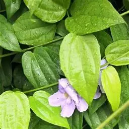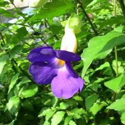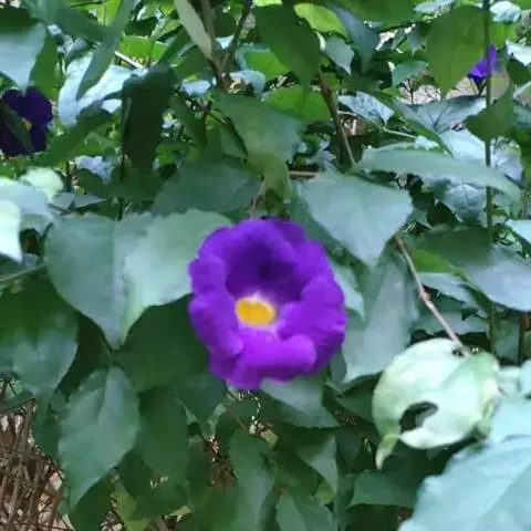 山牵牛为多年生植物,其最佳观赏时段自成形后可达20年以上。山牵牛为棚架、倚树攀生犁型植物。适合庭院、棚架栽培。当其成形后,叶密荫浓,能够给夏天供一片纳凉之地。