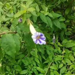山牵牛(学名:Thunbergia grandiflora (Rottl. ex Willd.) Roxb.)是爵床科、山牵牛属攀缘灌木,分枝较多,可攀援很高,匍枝漫爬。叶片卵形、宽卵形至心形。花在叶腋单生或成顶生总状花序,苞片小,卵形。蒴果被短柔毛。