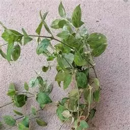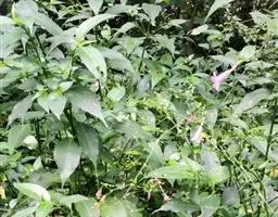 山牵牛 植株 攀缘灌木,分枝较多,可攀援很高,匍枝漫爬,小枝条稍4棱形,后逐渐复圆形,初密被柔毛,主节下有黑色巢状腺体及稀疏多细胞长毛。叶具柄,叶柄长达8厘米,被侧生柔毛;叶片卵形、宽卵形至心形,长4-9(15)厘米,宽3-7.5厘米,先端急尖至锐尖,有时有短尖头或钝,边缘有2(4)-6(8)宽三角形裂片,两面干时棕褐色,背面较浅,上面被柔毛,毛基部常膨大而使叶面呈粗糙状,背面密被柔毛。通常5-7脉。