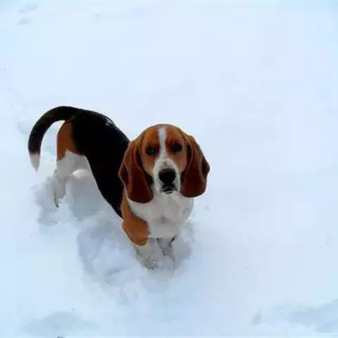 耳根位置高,分的很开,被毛丰富,耳部下垂的部分长而宽。嘴唇不下垂,轮廓分明。后肢相互平行。前肢笔直,骨盆宽,肌肉丰富;膝关节屈曲良好。胸部深达肘部,腹部稍向上收。颈相当长,没有喉音,肌肉丰满呈拱形。黑鼻镜,无斑块,鼻孔向上。眼大且圆,不向外突出,两眼间距较远;颜色为深褐色,目光明亮透明。眼睛下方有软垫,边缘为黑色 。