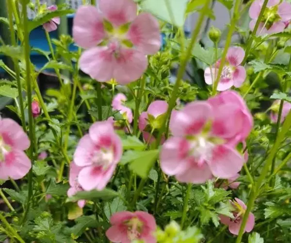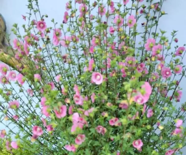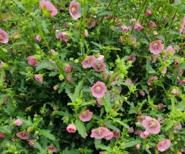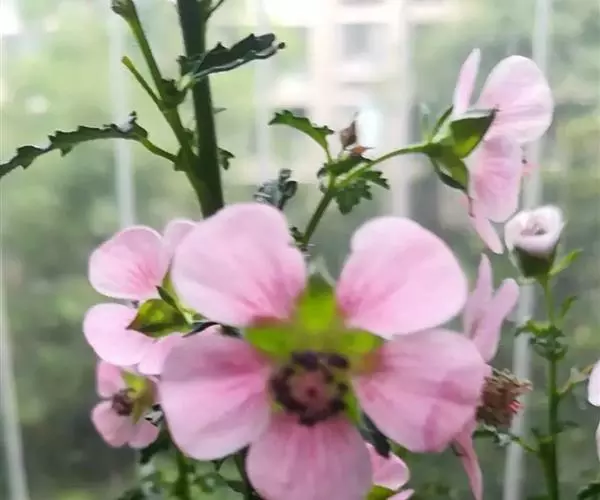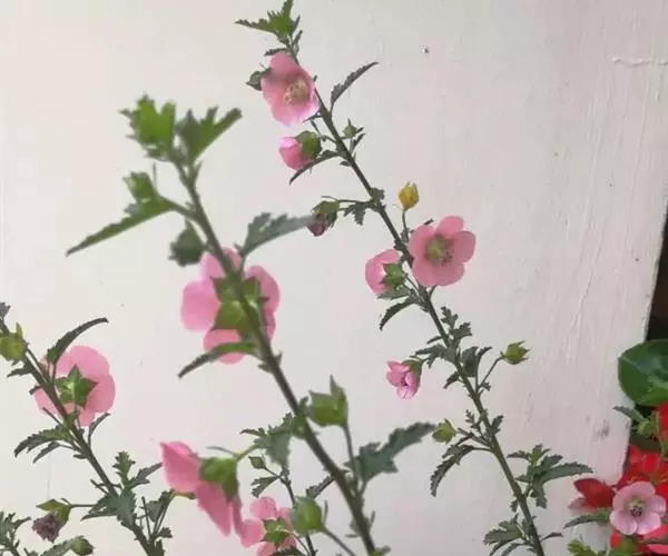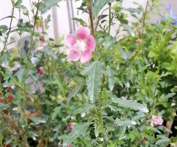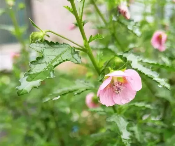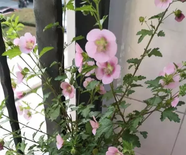 小木槿为锦葵科多年生半灌木。又名:南非葵、小木槿、玲珑木槿、迷你木槿、假木槿、迷你芙蓉及大茴香草,台湾多用:玉玲珑、玲珑扶桑。茎具分枝,绿色、淡紫色或褐色。花期夏至秋。型态像缩小版的木槿。于叶腋处开1~3朵花。花小,5瓣,圆整可爱,为粉色或粉红色。开花不断,花苞非常多,花瓣轻盈,花形清秀。产地山东、安徽、江苏长景园林、浙江等地。