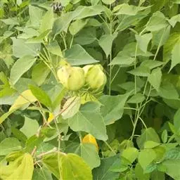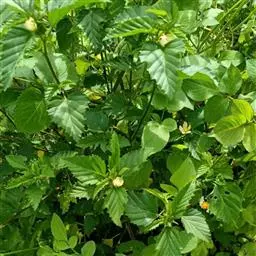 苘麻锦葵科苘麻属一年生亚灌木草本植物。茎秆较高,上面有柔毛;叶子较大且有纹路,浅绿色,边缘不平整,…