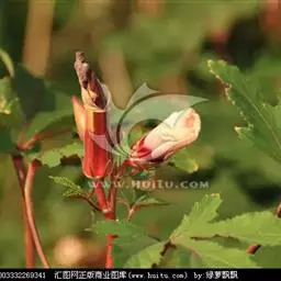 咖啡黄葵 Moench)亦称黄秋葵,是锦葵科一年生草本植物。茎圆柱形,疏生散刺。叶掌状,裂片阔至狭,…