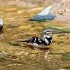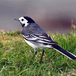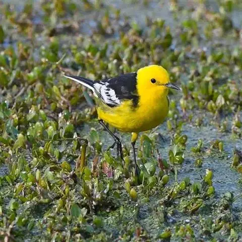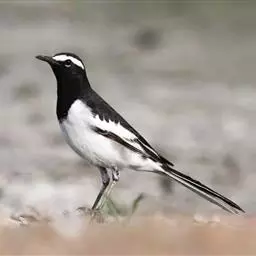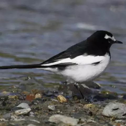 日本鹡鸰:体长约20厘米。上体多黑色,额、颏及眉纹白,下体白,两翼黑而具白色横斑及羽缘,…