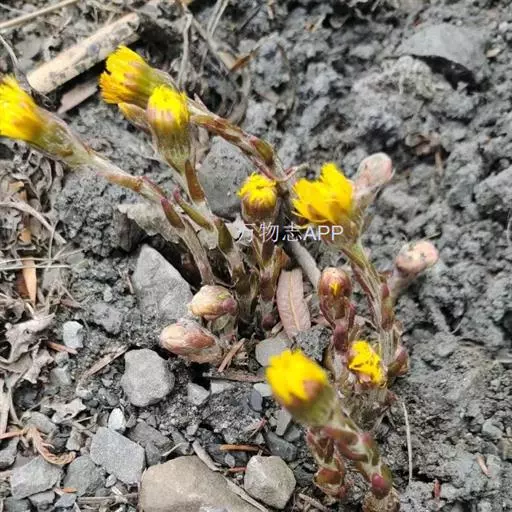 多年生草本。根状茎横生地下,褐色。早春花叶抽出数个花葶,高5-10厘米,密被白色茸毛,有鳞片状,互生的苞叶,苞叶淡紫色。头状花序单生顶端,直径2.5-3厘米,初时直立,花后下垂;总苞片1-2层,总苞钟状,结果时长15-18毫米,总苞片线形,顶端钝,常带紫色,被白色柔毛及脱毛,有时具黑色腺毛;边缘有多层雌花,花冠舌状,黄色,子房下位;柱头2裂;中央的两性花少数,花冠管状,顶端5裂;花药基部尾状;柱头头状,通常不结实。瘦果圆柱形,长3-4毫米;冠毛白色,长10-15毫米。后生出基生叶阔心形,具长叶柄,叶片长3-12厘米,宽4-14-厘米,边缘有波状,顶端增厚的疏齿,掌状网脉,下面被密白色茸毛;叶柄长5-15厘米,被白色棉毛。