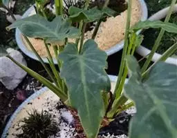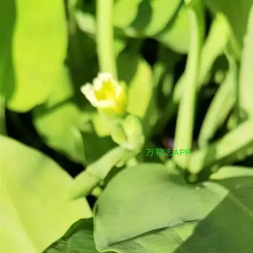 水生草本。叶丛生,挺出水面;叶片卵形至近圆形,长6-28厘米,宽4.5-20厘米,亮绿色,先 黄花蔺 端圆形或微凹,基部钝圆或浅心形,背面近顶部具1个排水器;叶脉9-13条,横脉极多数,平行,几与中肋垂直,网脉细密,不明显;叶柄粗壮,三棱形,长20-65厘米。