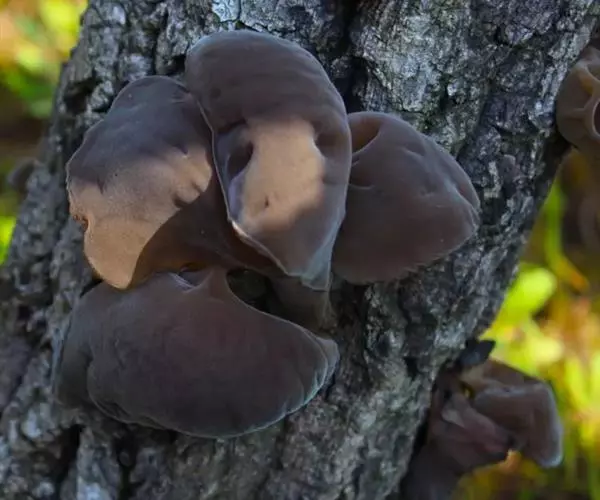 实体丛生,常覆瓦状叠生。耳状。叶状或近林状,边缘波状,薄,宽2-6cm,最大者可达12cm,厚2mm左右,以侧生的短柄或狭细的基部固着于基质上。初期为柔软的胶质,粘而富弹性,以后稍带软骨质,干后强烈收缩,变为黑色硬而脆的角质至近革质。背面外面呈弧形,紫褐色至暗青灰色,疏生短绒毛。绒毛基部褐色,向