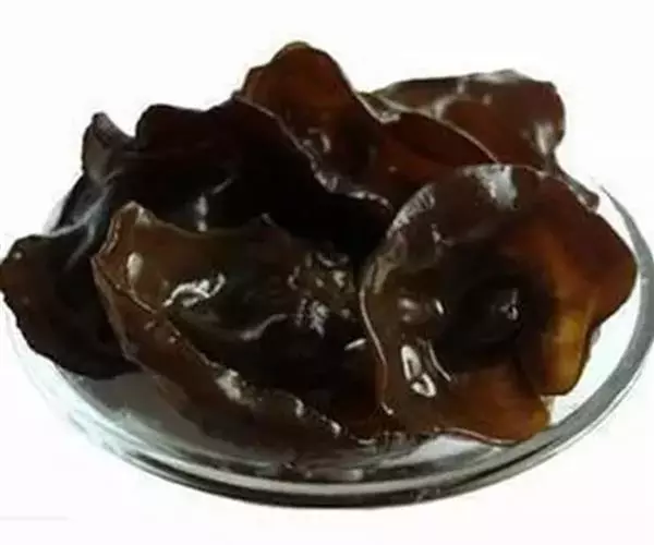 黑木耳子实体胶质,成圆盘形,耳形不规则形,直径3-12厘米。新鲜时软,干后成角质。口感细嫩,风味特殊,是一种营养丰富的著名食用菌。100克干黑木耳中水分10.9克、蛋白质10.6克、脂肪0.2克、碳水化合物65.5克、热量306千卡、粗纤维7.0 克、灰分5.8克、钙357毫克、磷201毫克、铁185毫克、胡萝卜素0.03毫克、硫胺素0.15毫克、核黄素0.55毫克、烟碱酸2.7毫克和多重矿物质。水发木耳蛋白质极低,百克含1.5克。有益气、充饥、轻身强智、止血止痛、补血活血等功效。富含多糖胶体,有良好的清滑作用,是矿山工人、纺织工人的重要保健食品。还具有一定的抗癌和治疗心血管疾病功能等等。
