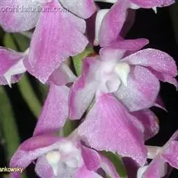 指甲兰是兰科指甲兰属植物。其茎粗壮;叶带状;总状花序疏生数朵花;萼片和花瓣淡白色,…