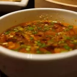 4.将作法3的汤与料加入刀削面碗中,并加入氽烫过的小白菜、酸菜,撒上葱花即可。