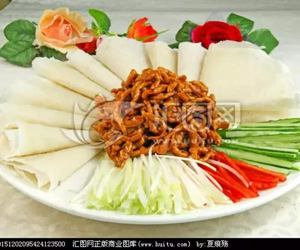猪里脊肉、大葱、黄瓜、豆皮儿、甜面酱、白糖、香油、酱油、料酒、蛋清、淀粉、葱、姜等。