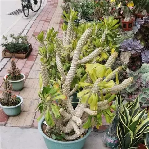 皱叶麒麟是大戟科大戟属多年生肉质植物。植株呈矮性匍匐状,高5-10厘米。短小的肉质茎细圆棒状。…