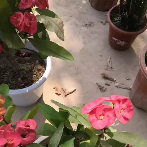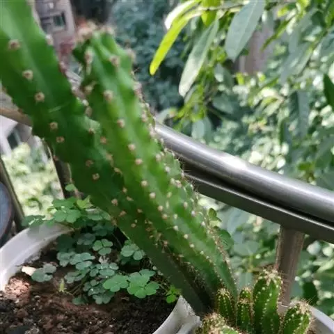 虎刺梅:别称铁海棠,是蔓生灌木植物。茎多分枝,长60-100厘米,直径5-10毫米,具纵棱,密生硬…