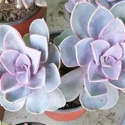 紫珍珠是景天科石莲花属的多年生肉质草本植物。植株中小型;叶片肉质,匙形,呈莲座状紧密排列;叶片粉紫色,…