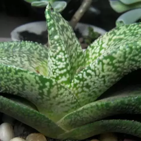 卧牛是阿福花科鲨鱼掌属多年生肉质草本植物。卧牛茎不明显,植株矮小,短、肥、厚的墨绿色叶片平展,…