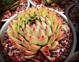 女雏是景天科石莲花属的多肉植物。特征是小巧的株形和橙粉色叶缘。极易生侧芽,…