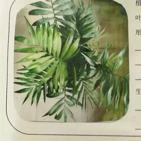 细叶棕竹,灌木,茎细如竹,多数聚生,有网状叶鞘。叶半圆形,掌状深裂,裂片狭长,阔线形,软垂,裂片7…