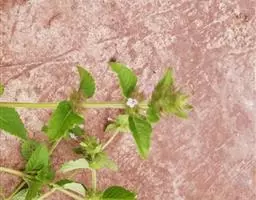 直立草本。茎高9-40厘米,纤细,自基部多分枝,或植株矮小不分枝,被白色疏柔毛。叶线状长圆形至线状披针形,长1.3-2.8(3.3)厘米,宽2-4(7)毫米,先端渐尖或急尖,基部渐狭或楔形,边缘具疏而不明显的浅锯齿,上面榄绿色,下面较淡,两面均被疏短柔毛及棕色凹陷腺点;叶柄长3-5毫米,被疏短柔毛。