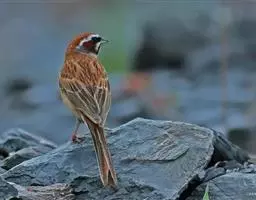 栗斑腹鹀:属小型鸣禽。体重19-25克,体长145-167毫米。头顶至背栗红色,眼先和颧纹黑褐色,…