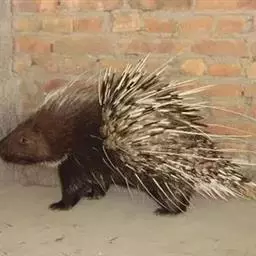 豪猪又叫箭猪,意即满身针刺的猪。其实它根本不象“猪”,因为它从背部到尾部,均披着猪所没有的、像簇箭一样的棘刺。特别是臀部棘刺长得更长、更多,其中粗者宛若筷子,长者近达半米。每根棘刺的颜色是黑白相间,鲜明夺目。豪猪除有棘刺外,它还有一个肥壮的体躯,锐利的牙齿,鼠一般的嘴脸,因此属于啮齿目动物。