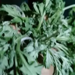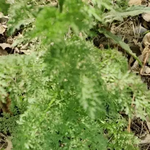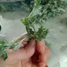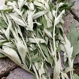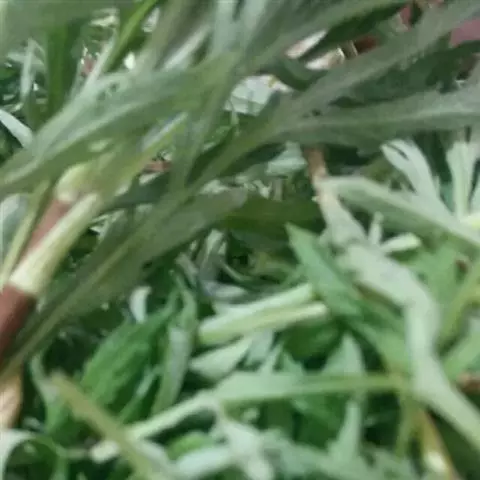 性状:幼苗多卷曲成团状,灰白色或灰绿色,全体密被白色茸毛,绵软如绒。茎细小,长1.5—2.5厘米,直径0.1—0.2厘米,多弯曲或已折断;分枝细,基部较粗,直径约0.2厘米;除去表面的白色茸毛后可见明显纵纹;质脆,易折断。叶具柄,多皱缩卷曲,展平后叶片呈一至三回羽状分裂,叶片长l一3厘米,宽约1厘米;小裂片卵形或稍呈倒披针形,条形,先端锐尖。气清香,味微苦。