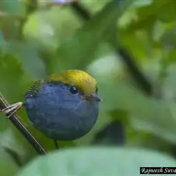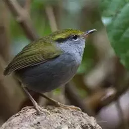 金冠地莺:形态与灰腹地莺相似,上体橄榄绿,前额至头顶渲染亮金黄色;下体几乎纯暗石板灰色,…