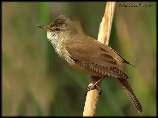 大苇莺(学名:Acrocephalus arundinaceus):属小型鸟类,雌雄两性羽色相似。眉纹淡棕黄色;眼褐色;翅褐色具淡棕色的边缘;尾羽亦褐色,但较翅羽的褐色稍浅。顶部是棕色,上体呈黄褐色,腹面淡棕黄色,两胁较深,腹部中央转为乳白色。虹膜褐色;上嘴黑褐色,下嘴苍白,先端黑茶色;脚淡铅蓝色。喙薄,像大多数食虫动物。