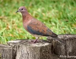 棕斑鸠,是鸽形目鸠鸽科斑鸠属鸟类。整个头和颈淡粉红色,头顶和前额较暗,颊、喉较淡,…