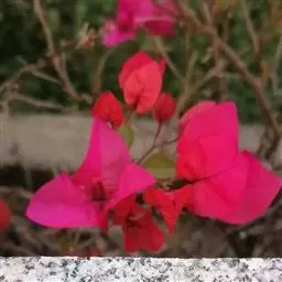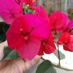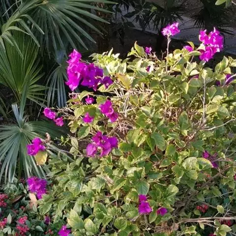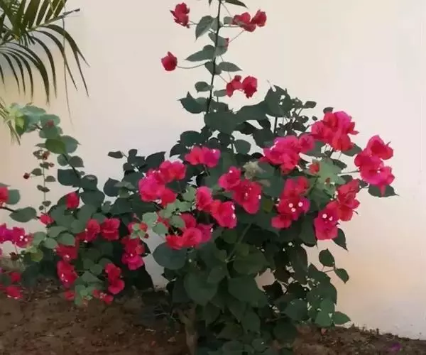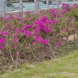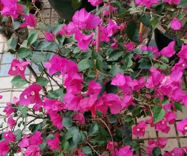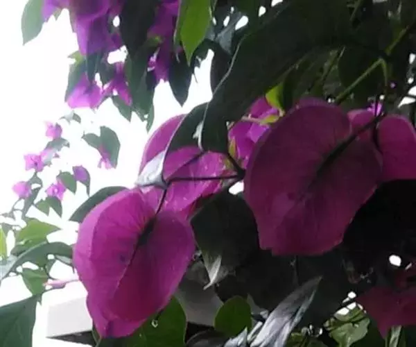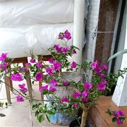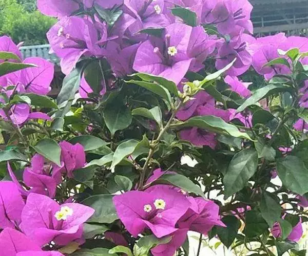 叶子花 移栽以及移栽后的管理:移栽时要注意的一点是,即打算移栽前的2天至3天不要浇水,以便使营养钵内的泥土硬结成团,避免移栽时土壤散开,导致长出的新根与泥土分离,影响移栽后的成活和生长。移栽时,先用枝剪或小锯片在营养钵外紧挨营养钵壁的地方将枝条剪断或锯断。然后,小心地将营养钵去掉,再将植株移栽在准备好的花盆内。盆土以园土拌腐叶土或岩山土为好,盆土内最好还拌上一些经过发酵的菜枯或豆饼枯之类的基肥。移栽后再在植株旁边插上木棍将植株捆扎固定。然后浇水,水要浇透。如果阳光太强,可将花盆放在阳台内遮阳1天至2天,然后再放到阳台上晒太阳,按正常的管理方法管理。