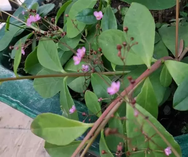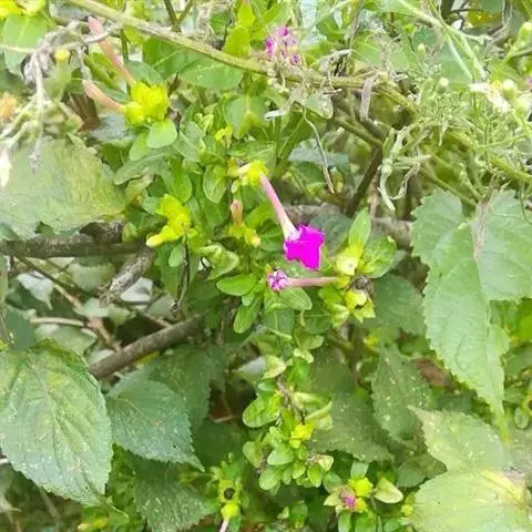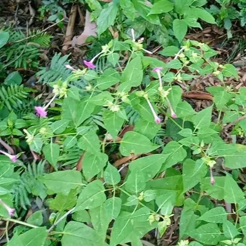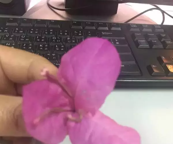 叶子花 藤状灌木。枝、叶密生柔毛;刺腋生、下弯。叶片椭圆形或卵形,基部圆形,有柄。花序腋生或顶生;苞片椭圆状卵形,基部圆形至心形,长2.5-6.5厘米,宽1.5-4厘米,暗红色或淡紫红色;花被管狭筒形,长1.6-2.4厘米,绿色,密被柔毛,顶端5-6裂,裂片开展,黄色,长3.5-5毫米;雄蕊通常8;子房具柄。果实长1-1.5厘米,密生毛。花期冬春间。