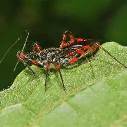 按蚊: 中华按蚊 第一大类是按蚊,按蚊成虫的特征是翅大多有斑,身体大多是灰色的,身体在停留的时候,与停留面保持一定的角度,它大多在夜间活动;中华按蚊的幼虫孳生在大型积水中,如水稻田、沼泽、芦苇塘、缓流沟渠等地方。