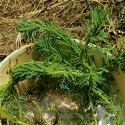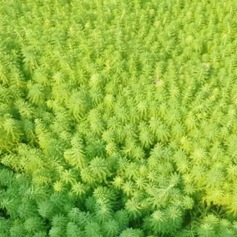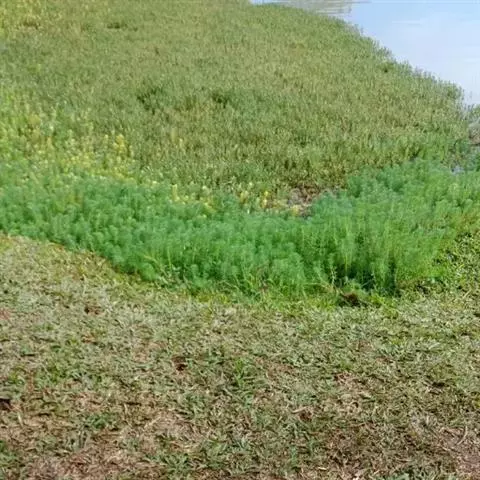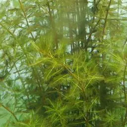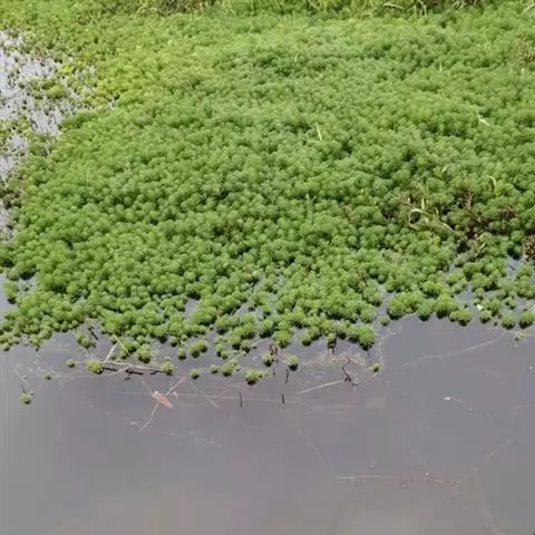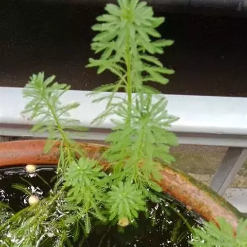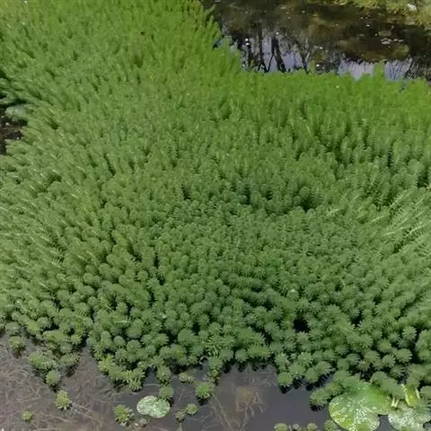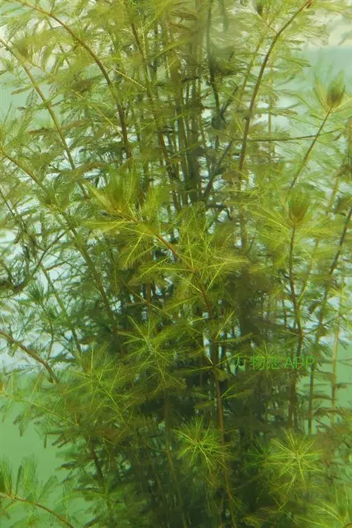 穗状狐尾藻,别名:泥茜、聚藻、金鱼藻,拉丁文名:Myriophyllum spicatum L. 小二仙草科、狐尾藻属多年生沉水草本。根状茎发达,在水底泥中蔓延,节部生根。茎圆柱形,叶柄极短或不存在。花两性,单性或杂性,雌雄同株,单生于苞片状叶腋内,由多数花排成近裸颓的顶生或腋生的穗状花序,柱头羽毛状,向外反转,大苞片矩圆形,全缘或有细锯齿,较花瓣为短,小苞片近圆形,边缘有锯齿。分果广卵形或卵状椭圆形,具4纵深沟,沟缘表面光滑。花期从春到秋陆续开放,4-9月陆续结果。