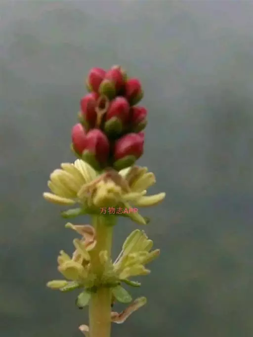 • 叶子表面宽厚,富肉质感且带有磨纱质感,看像石头质地;开红色小花,生于植株顶部,倒伞形密生,形状像花…
