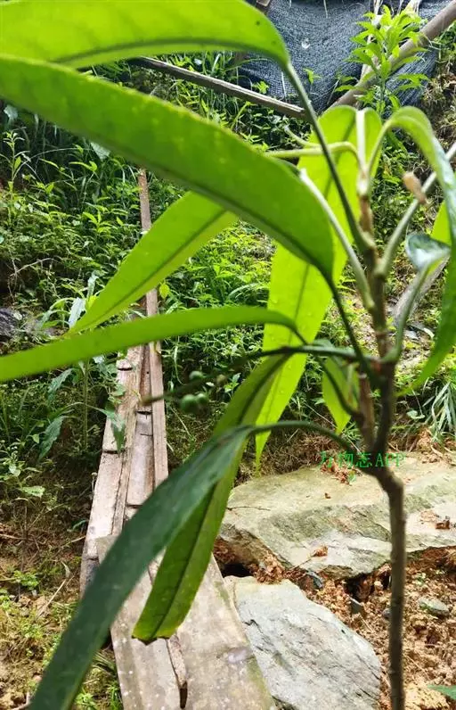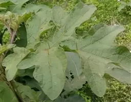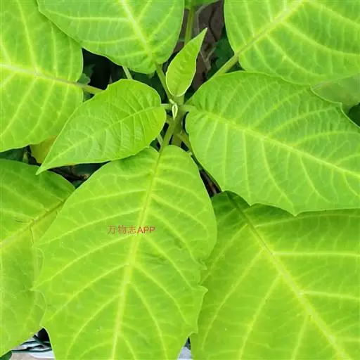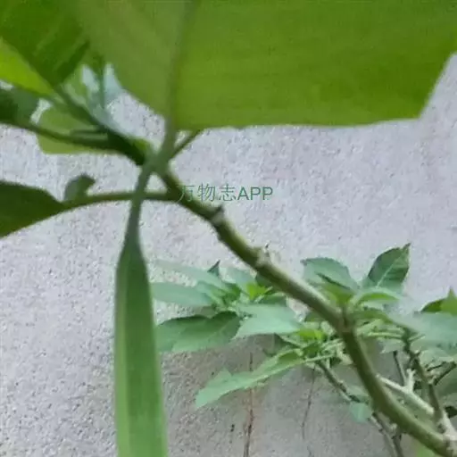 小乔木,高2米余。茎粗壮,上部分枝。叶卵状披针形、矩圆形或卵形,顶端渐尖或急尖,基部不对称楔形或宽楔形,全缘、微波状或有不规则缺刻状齿,两面有微柔毛,侧脉每边7-9条,长9-22厘米,宽3-9厘米;叶柄长1-3厘米。