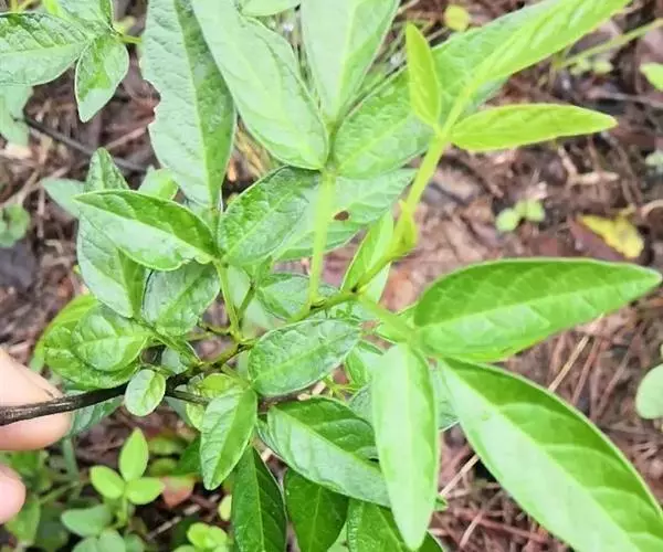 直立灌木或亚灌木,高1-2米。树皮灰褐色,分枝多,上部分枝略被柔毛。叶为羽状三出复叶,小叶3;托叶披针状线形,长5-10毫米,基部宽约1毫米,具条纹,宿存,叶柄长1.5-4厘米,扁平,较厚,上面具深沟,多少被柔毛,两侧具极窄的翅;小叶近革质或纸质,顶生小叶披针形或长圆形,长5-9厘米,宽1.5-2.5厘米,侧生小叶较小,先端渐尖,急尖或短渐尖,基部楔形,全缘,上面绿色,有光泽,疏被极短柔毛、老时渐变无毛,下面疏被贴伏短柔毛,中脉上毛较密,侧脉每边10-12条,不达叶缘;小托叶丝状,长2-5毫米;小叶柄长达14毫米。