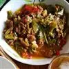 在传统的牛杂汤的基础上,牛杂萝卜将牛大肠、粉肠、牛肺、牛肚、牛筋、牛肝、牛心、牛腰、牛膀、牛百叶、白萝卜、油豆腐等材料处理后,再加以串制,与传统的串串香相结合,可以用手拿着吃,即文雅又好吃! 将牛杂洗干净后斩件,用盐、老抽、蚝油、胡椒粉等味料腌制30-50分钟后,放入油锅爆炒,收水(肉变色时就基本收水了)后放进小砂锅,放水至与肉平,加之花椒,八角,桂皮,陈皮,草果(一定要切开),姜,香葱,蒜瓣等煲10分钟,放切好的萝卜同熬20分钟左右即可食用。食时佐以辣椒酱!