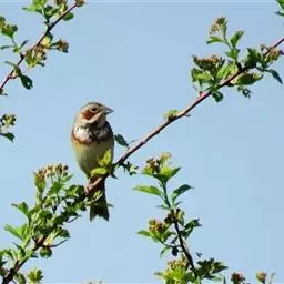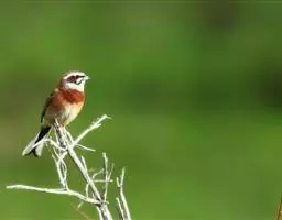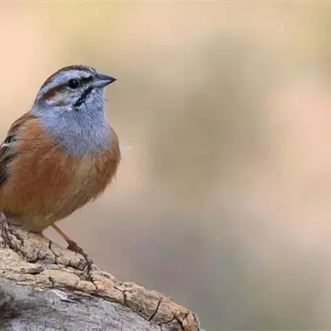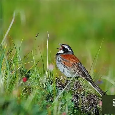 栗斑腹鹀:属小型鸣禽。体重19-25克,体长145-167毫米。头顶至背栗红色,眼先和颧纹黑褐色,…