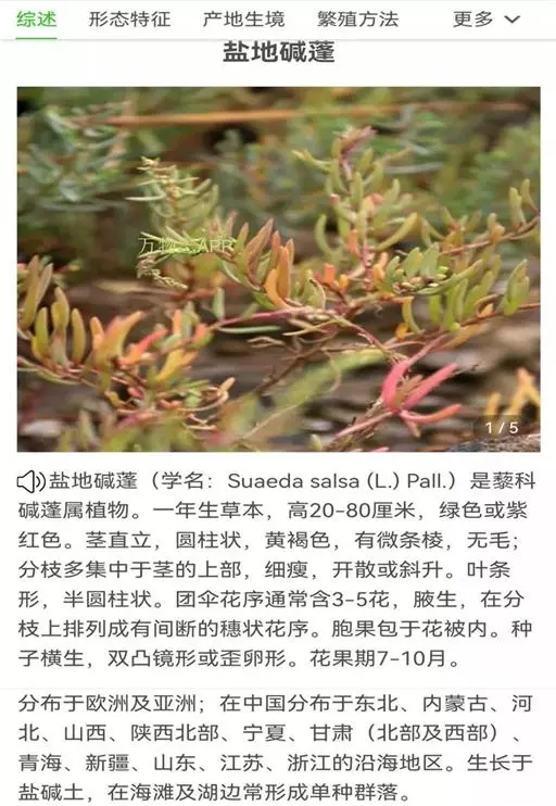 盐地碱蓬含有蛋白质、膳食纤维、多糖、色素、黄酮类化合物等,籽粒含有丰富共轭亚油酸,具有较高的食用价值和药用价值。