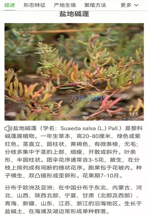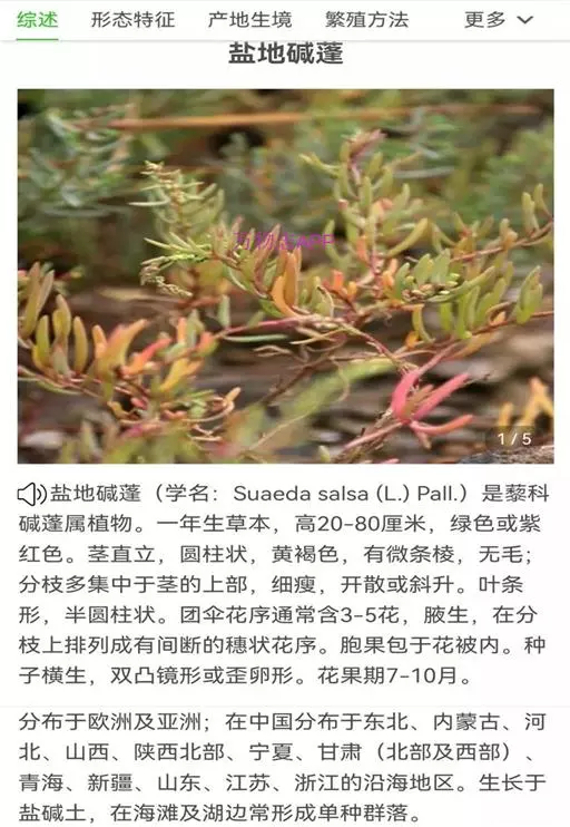 • 盐地碱蓬 Pall.)是苋科碱蓬属植物。一年生草本,高20-80厘米,绿色或紫红色。茎直立,圆柱状,…